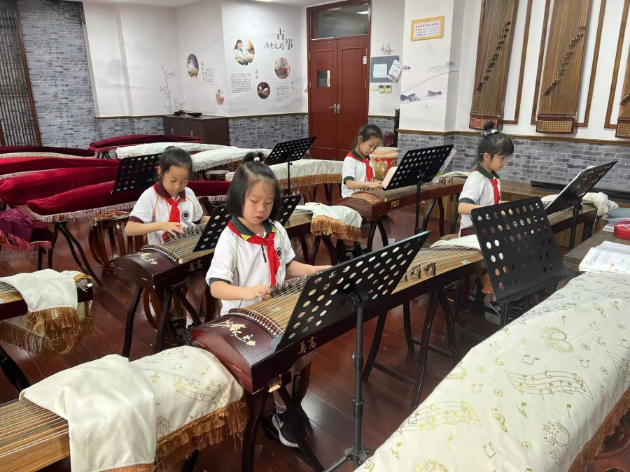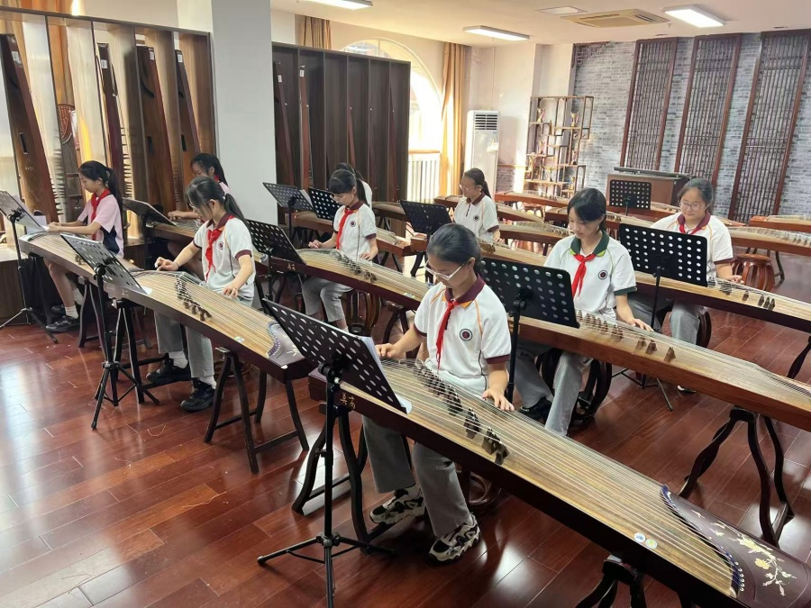 古筝,是我国传承千年已久的一种中华民族传统乐器,其音域宽广,音色优美动听,演奏技巧丰富,表现力强,因此被称为“众乐之王”,亦称为“东方钢琴”。学校古筝社团采用教学、练习、表演相结合的方式引导社团小学员们学习古筝的理论知识、基本功、演奏技巧。